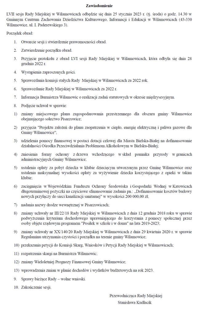 INFORMACJA DLA MIESZKAŃCÓW GMINY WILAMOWICE –