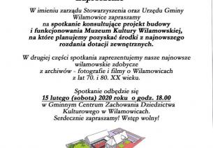 » 15 lutego - spotkanie konsultujące projekt Muzeum Kultury Wilamowskiej