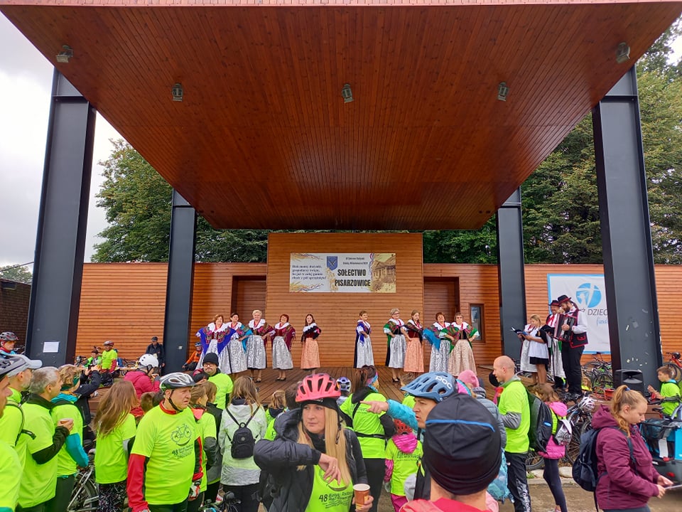 Przypomnę, że na przyjęcie ponad 600 rowerzystów pracowały organizacje: UKS „Sokół”, LKS „Pionier”, Koło Gospodyń Wiejskich „Strażniczki Tradycji”, Ochotnicza Straż Pożarna z Pisarzowic, sołtys z Radą Sołecką, Fundacja „Krzyż Dziecka”, GCDT z Pisarzowic. Około godziny 13:00 pożegnaliśmy cyklistów z nadzieją, że zobaczymy się także podczas następnego rajdu.
