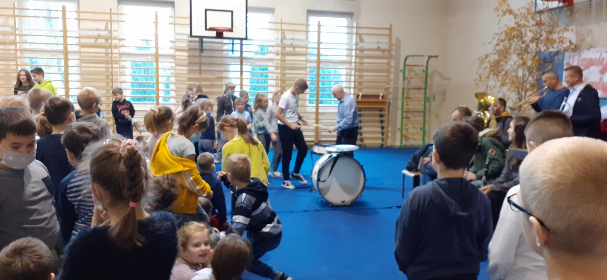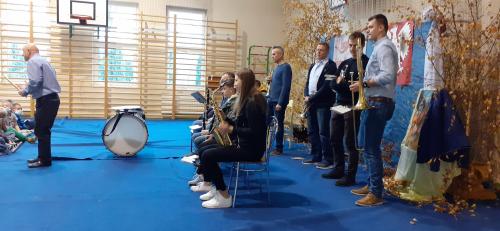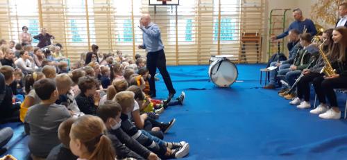 W czasie wstępnej prelekcji zgromadzona w sali gimnastycznej młodzież przekonała się, że muzyka to najsubtelniejsza forma przekazu, bowiem tak jak żadna inna dziedzina sztuki nie porusza, ani nie wpływa na podświadomość. A skoro w historii muzyki i instrumentarium muzycznego orkiestra dęta ma najdłuższy rodowód, dlatego też ci, którzy wyrażają się artystycznie w jej szeregach, zasługują na podziw i uznanie.