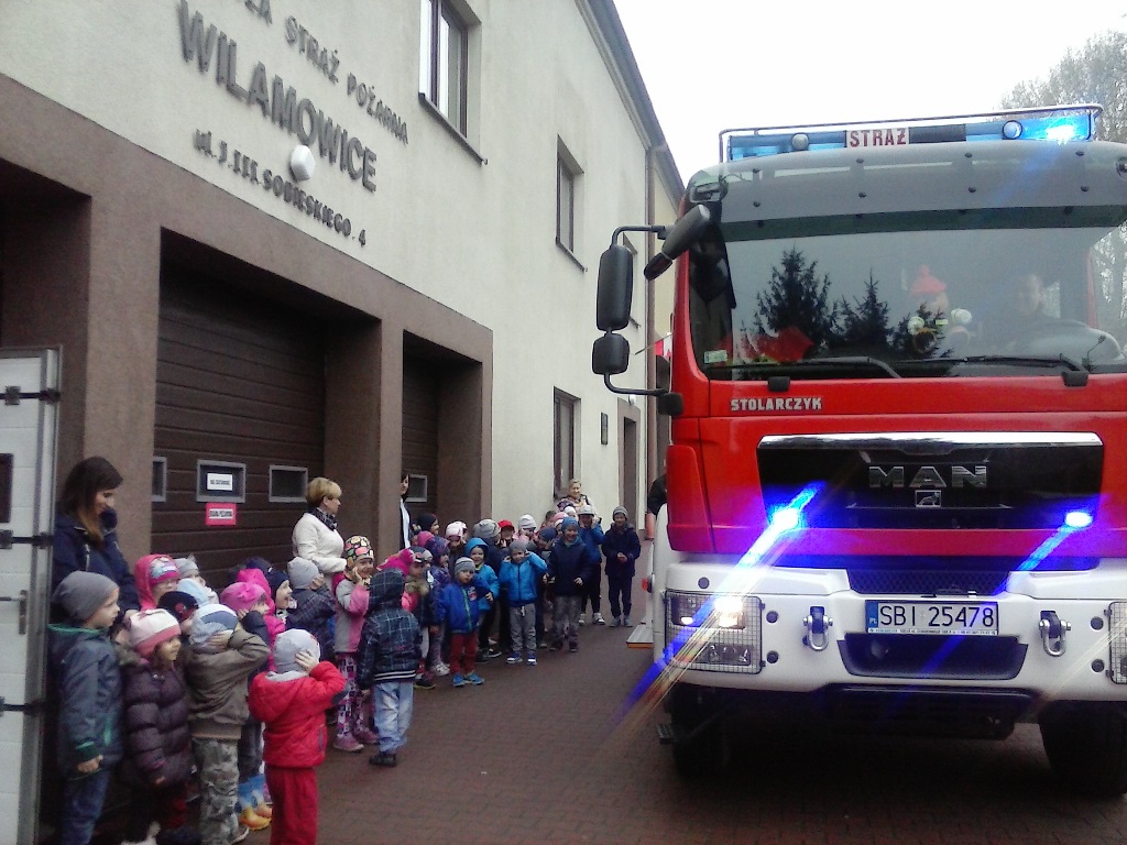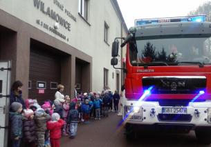 Przedszkolaki z Przedszkola Publicznego w Wilamowicach w remizie OSP