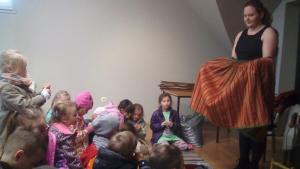 Tego dnia również po długim weekendzie wypoczęte przedszkolaki z grupy V udały się do budynku Dziedzictwa Kulturowego Miasta Wilamowice na spotkanie z panią Justyną Sznajder. Jej barwne opowieści uświadomiły dzieciom jak dawniej w Wilamowicach przebiegało życie codzienne, czym zajmowali się mieszkańcy i w jaki sposób zarabiali na swe utrzymanie. Przedszkolaki dowiedziały się z jakich roślin można było wykonać tkaniny i jak pozyskiwano z nich włókna. Poznały również prostą budowę cepów – koniecznych do wytrącenia z roślin nasion. Miały też okazję zaobserwowania pracy na kołowrotku oraz nauczenia się przeplatania kawałków tkaniny na krosnach, tworząc piękne dywaniki. Pani Justynie serdecznie dziękujemy za ciepłe przyjęcie, profesjonalny wykład i ciekawe warsztaty tkackie.