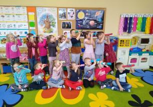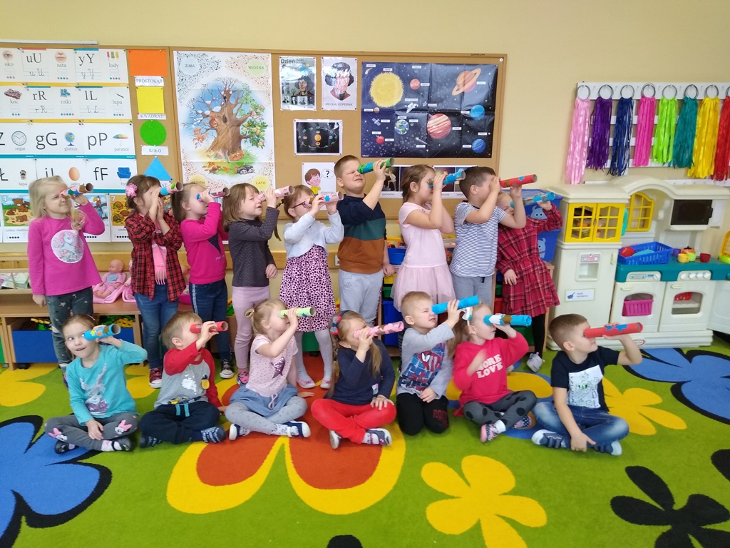 Cały miniony tydzień poświęciliśmy na zabawy badawcze i eksperymenty. Poznaliśmy tajemnice zawodu archeologa. Wykonaliśmy ciekawe prace plastyczno-konstrukcyjne, między innymi lunety Heweliusza, który był znamienitym konstruktorem instrumentów badawczych. Z kolei przy pomocy kolorowych tuszy i pipet, łączyliśmy kolory i wykonaliśmy malowidła na wzór rysunku naskalnego z Altamiry.
