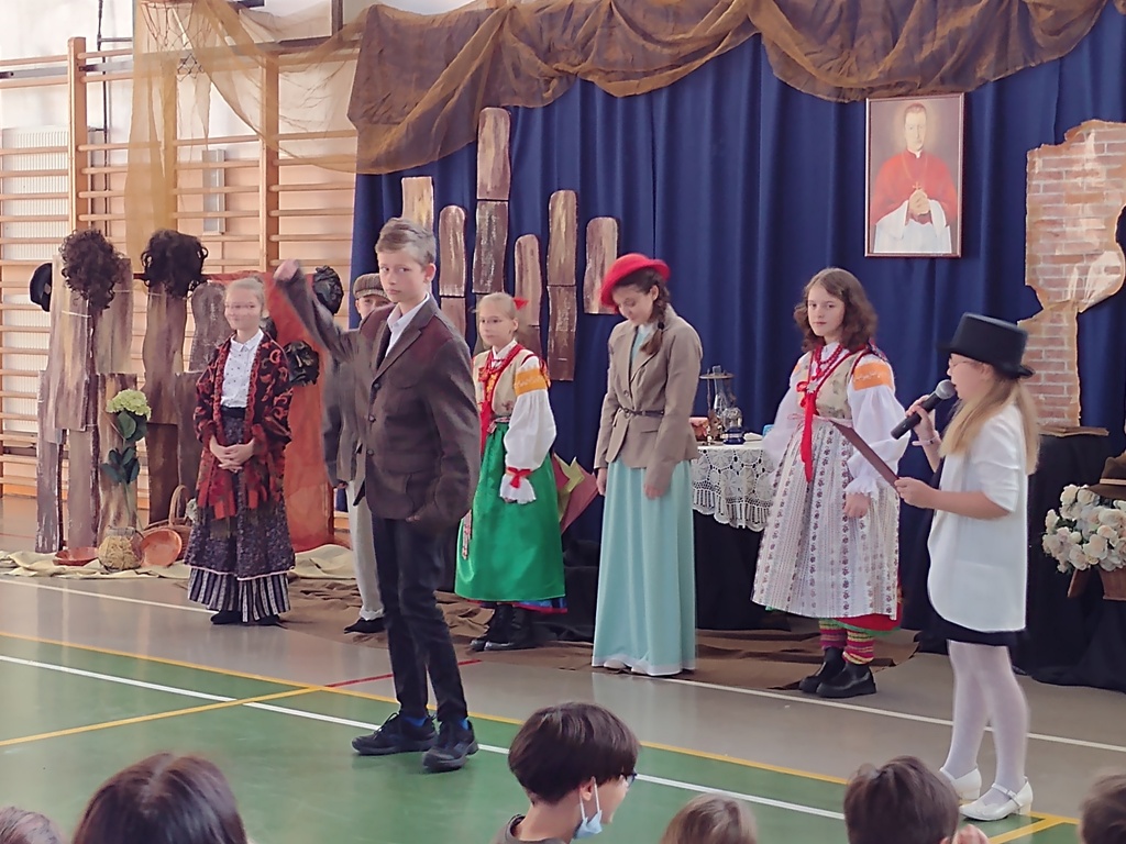 Uroczystość Dnia Patrona rozpoczęliśmy niezwykłą miniaturą teatralną przygotowaną przez siostrę Kazimierę Szumal. Uczniowie przypomnieli sobie najważniejsze informacje z życia abpa Józefa Bilczewskiego.