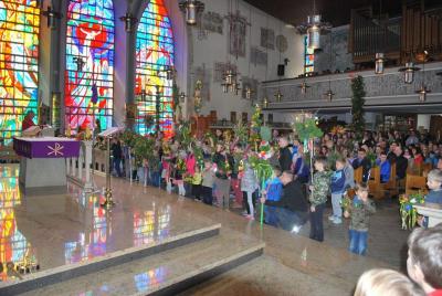 Wspaniała, słoneczna pogoda przyczyniła się także do przyjścia bardzo dużej ilości mieszkańców z dziećmi oraz młodzieży z palmami do kościoła p.w. św. Marcina w Pisarzowicach. Ksiądz proboszcz Janusz Gacek w asyście wikariusza ks. Adama poświęcili wspaniałe palmy i uczestnicy weszli na Mszę Świętą, po której księża wikariusze rozdawali uczestnikom piękne zakładki do książki o treści religijnej. Następnie zrobiono wspólne zdjęcie i uczestnicy zgłaszający swoje ręcznie wykonane palmy skierowali się do Wiejskiego Domu Kultury, by zadeklarować swoje uczestnictwo w konkursie.