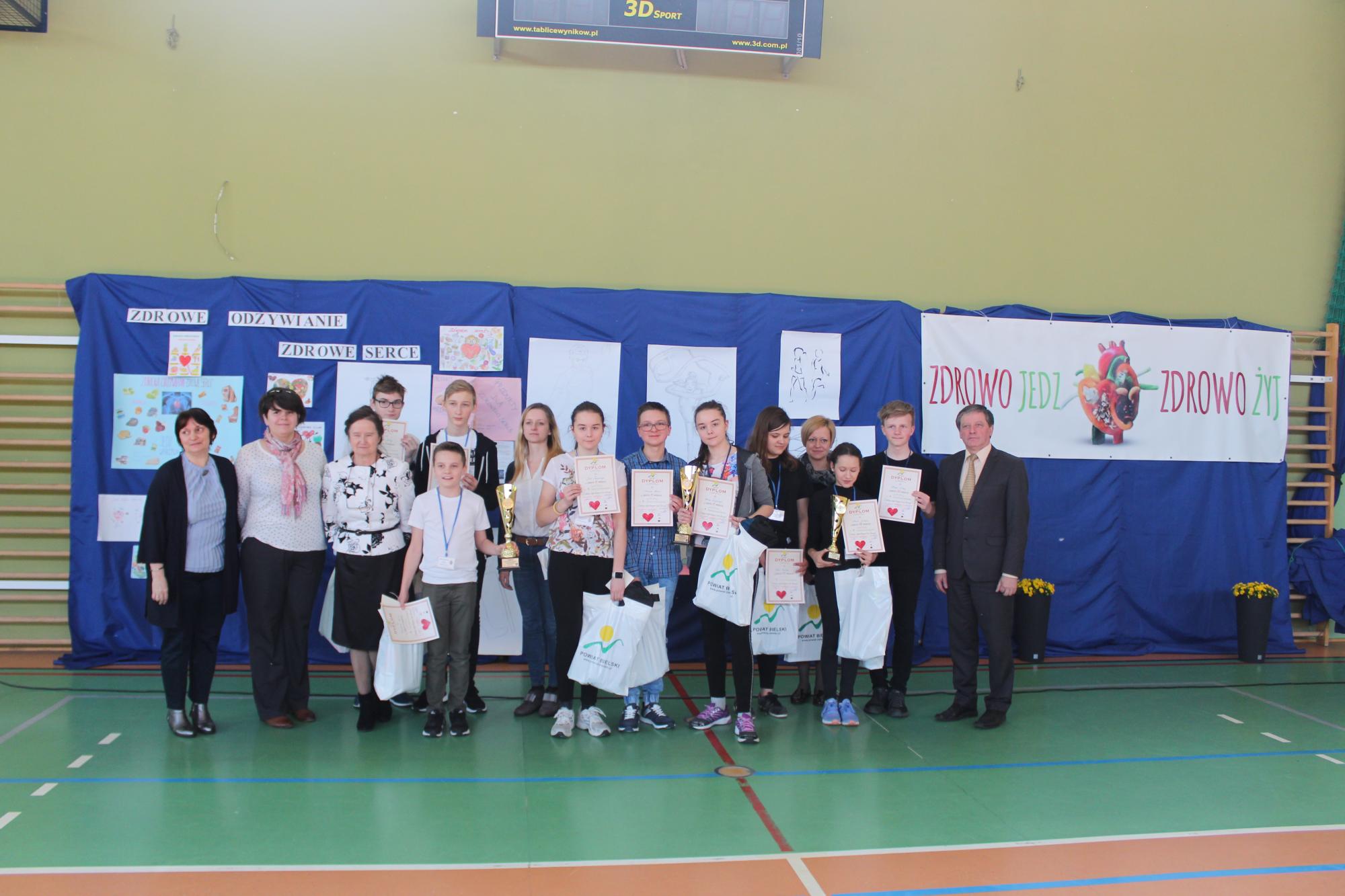 z zakresu profilaktyki dotyczącej ruchu, zdrowego odżywiania, uzależnień oraz chorób cywilizacyjnych. Pod okiem ratowników medycznych Pana Tadeusza Łasia i Pani Agnieszki Szypuły zmagali się z zaprezentowaniem resuscytacji oraz wylosowanej scenki związanej z udzieleniem pierwszej pomocy. Temat chorób cywilizacyjnych i uzależnień polegał na przedstawieniu scenki obrazującej wylosowany temat, wymagało od uczestników nie tylko dużej wiedzy, ale również kreatywności. Pani Justyna Wykrent sprawdzała sprawność przybyłej młodzieży organizując im zawody ruchowe „na wesoło”. Ostatnią konkurencją było tworzenie wartościowe, pysznego i odpowiednio zbilansowanego posiłku. Całość oceniała Pani Dietetyk Aleksandra Kubiczek, Pani Lucyna Majewska oraz przewodnicząca jury Pani Justyna Hejnał. Po wykonaniu jednego zadania młodzież sztafetowo przemieszczała się po szkole zaliczając kolejne konkurencje. Konkursowe zmagania drużyn obserwowali i zwycięzcom wręczali nagrody i upominki: wiceprzewodniczący Rady Powiatu w Bielsku-Białej Jerzy Kubik, członek Zarządu Powiatu w Bielsku-Białej Barbara Adamska, zastępca burmistrza Wilamowic Stanisław Gawlik oraz Helena Byrdy-Przybyła – przewodnicząca Komisji Zdrowia i Polityki Społecznej Rady Powiatu.
