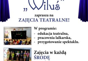 Już dziś zapraszamy na zajęcia teatralne z Dziecięcym Teatrzykiem Lalkowym "Wiluś"