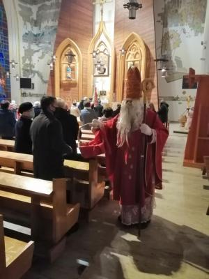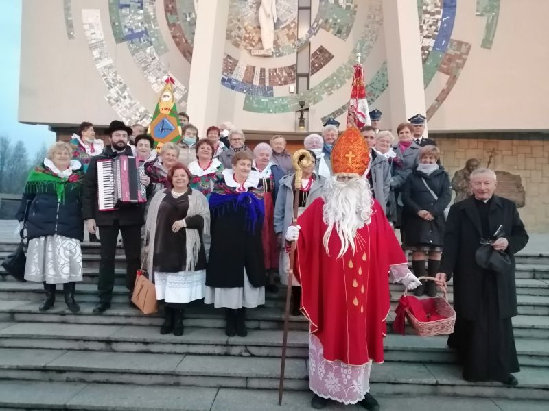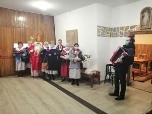Nie zabrakło również akcentu mikołajowego. Jubilatki zaprosiły Mikołaja, by ten częstował obecnych parafian i członkinie Koła słodkościami. Finałem była wspólna fotografia po mszy świętej zrobiona na schodach kościoła.
