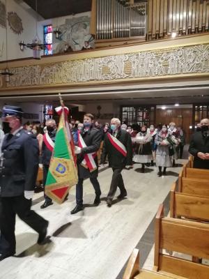 W dniu 6 grudnia ksiądz proboszcz odprawił Mszę Jubileuszową - dziękczynną w intencji członkiń koła. Członkowie Zespołu Regionalnego „Pisarzowianki” przywitali wchodzących do kościoła wiernych pieśnią „Lilio Biała”. Następnie poczty sztandarowe  strażaków i pszczelarzy współpracujących od dziesiątek już lat wprowadziły Zarząd i Komisje Rewizyjną do kościoła. Na ręce ks. proboszcza Janusza Gacka przewodnicząca złożyła uszyte obrusy na ołtarz i pod tabernakulum. Panie złożyły także  kwiaty z podziękowaniem za prawie stuletnią współpracę z księżmi naszej parafii, a od prawie 30 lat z obecnym ks. proboszczem. W pięknym kazaniu ksiądz proboszcz podziękował członkiniom Koła za wszystko co robią dla mieszkańców i parafii Pisarzowice. Podkreślił jak ważna jest dobra współpraca między sobą, bo tylko ona może przynosić pozytywne efekty. Współpraca między organizacjami, ale także współpraca między ludźmi. Można mieć różne zdania, ale zawsze należy szukać tego co łączy, a odrzucać to co może dzielić.