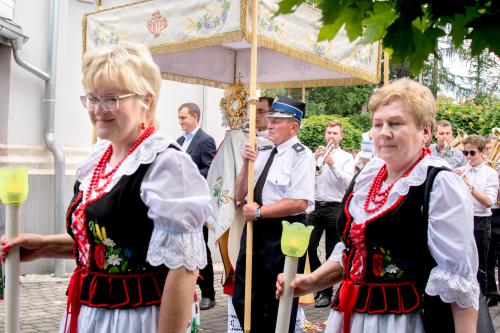 Uroczysta Eucharystia poprzedzona była wyjątkowym przemarszem, w którym mieszkańcy Hecznarowic oraz zaproszeni goście odprowadzili ks. Grzegorza z domu rodzinnego do kościoła parafialnego. Parafianie, by podkreślić doniosłość chwili i radość całej wspólnoty, udekorowali drogę młodego księdza. Po specjalnym błogosławieństwie udzielonym przez rodziców towarzyszący prymicjantowi uroczysty orszak wyruszył do świątyni. W procesji asystowali mu ksiądz wikariusz Wojciech Maćkowski i rodak ksiądz Bartłomiej Pająk oraz rodzina i przyjaciele. Nie zabrakło pocztów sztandarowych szkoły, górników, OSP Hecznarowice i wysyłających sygnały świetlne samochodów straży pożarnej, której ksiądz Grzegorz jest członkiem. Rytm pochodu wyznaczała Młodzieżowa Orkiestra Dęta. Sam prymicjant ubrany w szaty liturgiczne podążał otoczony dużym wieńcem, który niosły dziewczynki w białych komunijnych sukienkach. Kiedy procesja zmierzała do świątyni, słychać było dzwony witające przybywający na uroczystość orszak. Przed kościołem nowo wyświęconego księdza powitał proboszcz parafii ksiądz Aleksander Smarduch, trzymając w ręku przepiękny relikwiarz będący darem prymicjanta. Darem szczególnie cennym, bo kryjącym relikwie patrona hecznarowskiej świątyni św. Urbana – papieża i męczennika, których dotychczas parafia nie posiadała.
