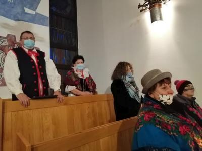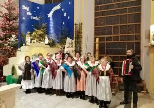 Członkowie Zespołu Regionalnego „Pisarzowianki” nie wystąpili z koncertem w kościele jak było wcześniej planowane (niestety obostrzenia covidowe nadal są), ale uświetnili śpiewem kolęd i pastorałek ostatnią mszę świętą, którą odprawił ks. Mateusz. Podczas mszy świętej członkowie zaśpiewali (była to premiera) przepiękną kolędę napisaną przez kaznodzieję Grzegorza Jana Zdziewojskiego z Łasku. Ksiądz ten był nie tylko wspaniałym kaznodzieją kontrreformacyjnego kościoła ,związany z warstwami ludowymi, ale i poetą. Pracował w naszej parafii w latach 30 XVII wieku. Muzykę do kolędy „Żłóbek Narodzenia Pana” napisał „współczesny już” akompaniator zespołu Kuba.