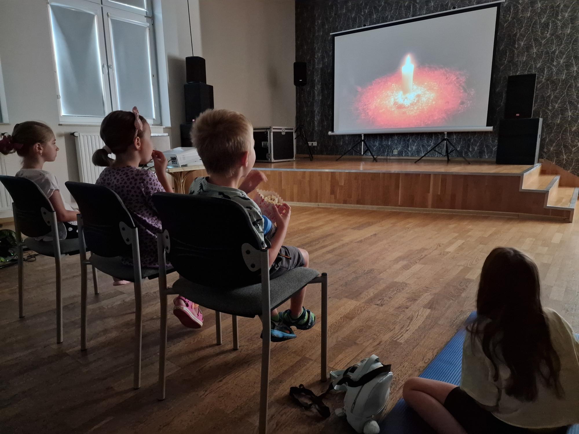 Zakończyliśmy pierwszy dzień Akcji Lato. Sala M-GOK Wilamowice zamieniła się w przestrzeń kinową podczas "Filmowego poranku z popcornem".