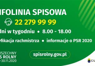 Dzisiaj startuje infolinia spisowa - 22 279 99 99, dostępna 7 dni w tygodniu, w godz. 8-18. Do końca sierpnia br. połączenie będzie oferowało kanały „weryfikacja rachmistrza” i „informacje o PSR 2020”.
