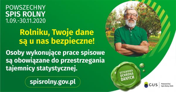 Trwa Powszechny #Spisrolny. Rolniku, Twoje dane są u nas bezpieczne! Osoby wykonujące prace spisowe są obowiązane do przestrzegania tajemnicy statystycznej.