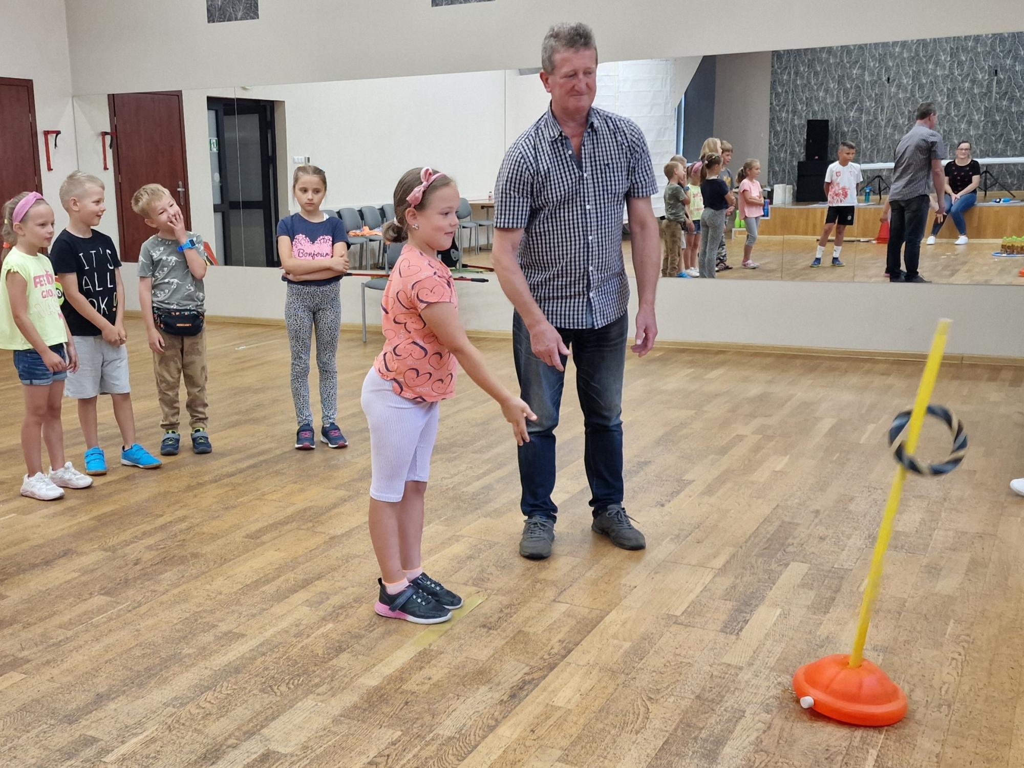 Rozpoczęliśmy rozgrzewką i szybkim quizem sportowym, by następnie przejść do serii kilku konkurencji, m.in. rzutu obręczą do celu, strzelania z łuku, rzutu lotkami do tarczy, slalomu hokejowego z piłką i innych konkurencji sprawnościowych - tych na czas, i tych zręcznościowych. Dzieci mimo sportowej rywalizacji wzajemnie się dopingowały. Uczestnicy poza nagrodami rzeczowymi otrzymali dyplomy za I, II i III miejsce w poszczególnych konkurencjach oraz nagrody za udział w dzisiejszym „Wtorku na sportowo”, nikt nie wyszedł z pustymi rękami! Na zakończenie dla regeneracji dzieci zjadły kiełbasę i wypiły ciepłą herbatę.