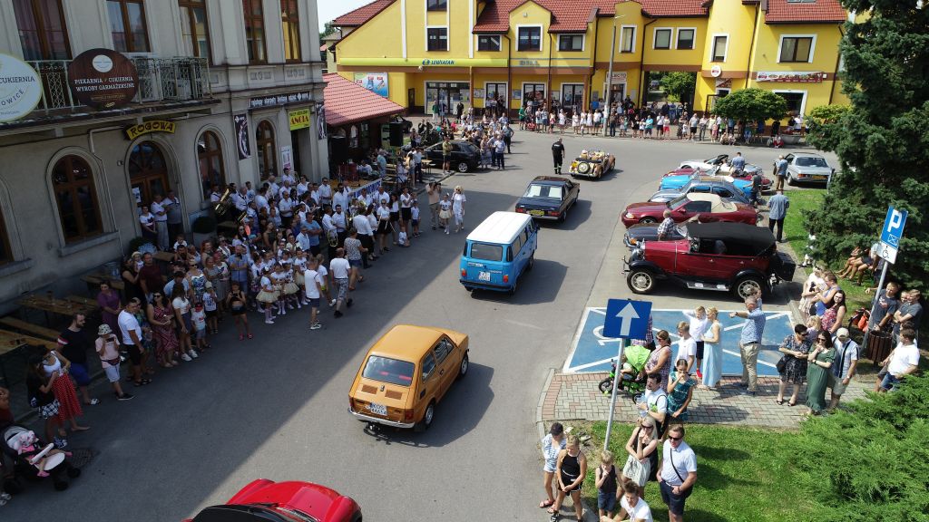 Uczestników rajdu, powitał zastępca burmistrza Wilamowic Stanisław Gawlik i Orkiestra Reprezentacyjna Gminy Wilamowice. Z układami tanecznymi wystąpiła także Akademia Mażoretek „Gracja” ze Starej Wsi. Wszyscy, którzy w tym gorącym dniu przybyli na wilamowski Rynek, mogli posilić się pyszną grochówką przyrządzoną przez OSP Wilamowice. W tym miejscu składamy podziękowania dla druhów, którzy zarówno zabezpieczali trasę rajdu i dbali o jego bezpieczeństwo.
