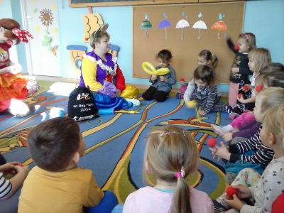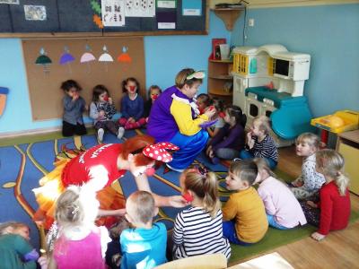 W dniu 3 listopada 2016 nasze przedszkole gościło przedstawicieli fundacji, której celem jest terapia śmiechem i zabawą. Fundacja pod nazwą "Doktor Clown" działa od 1999 roku. Odwiedzając szpitalne oddziały wywołuje uśmiech na twarzach chorych, a jej misją jest przekonanie, że smutek można leczyć.
