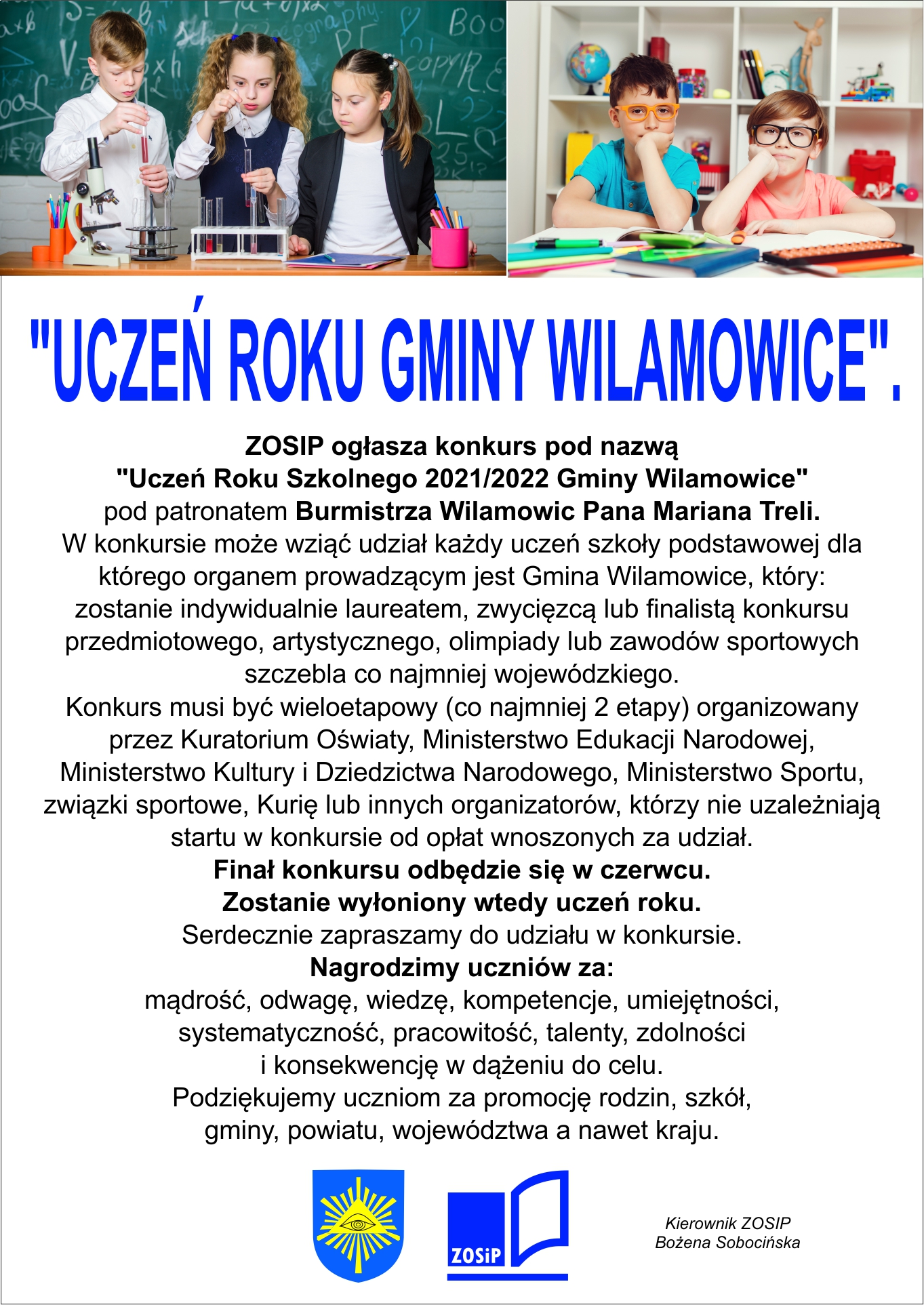 » Uczeń Roku Szkolnego 2021/2022" Gminy Wilamowice