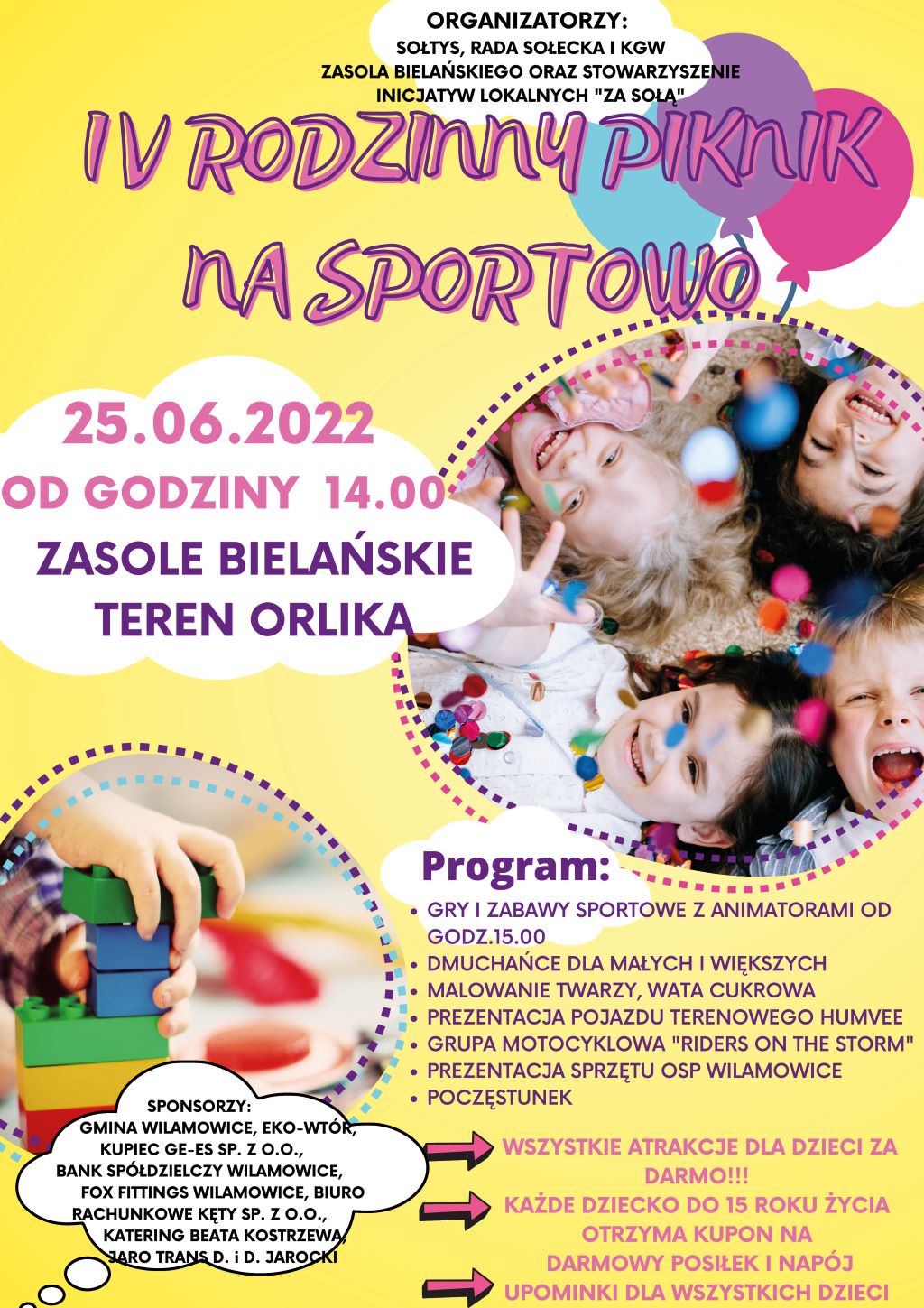 » W Zasolu Bielańskim już w najbliższą sobotę IV RODZINNY PIKNIK NA SPORTOWO!
