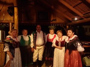 W tym dniu także zwiedziliśmy zamek Niedzicki i opłynęliśmy gondolą „Harnaś” Pienińskie Morze, czyli Jezioro Czorsztyńskie. Na nocleg dotarliśmy do Ośrodka Wczasowego, gdzie na Biesiadę przybyli przedstawiciele Stowarzyszenia Kobiet Niedzickich wraz z prezes Joanną Święty, którzy to promują tradycje Spisza. Goście ubrani w stroje spiskie, opowiadali o Niedzicy i atrakcjach związanych ze spiskimi miejscowościami. Przedstawiali w gwarze elementy stroju ;…to jest fartuch, pod spodem jest kanafoska dalej spodnik czyli halka, czerwony lejbik i koszula, a koronka którą obszyty jest fartuch to cipka. Panie opowiadały jak przygotowują potrawy tradycyjne i podawały ich nazwy regionalne np. der kliki - drożdżowe bułeczki z serem, chytre miyso z Niedzicy- polędwica wieprzowa nadziewana mięsem mielonym kiełbasianym owinięta w błonę, wytwarzana najczęściej przy świniobiciu, chytre czyli szybkie, dziadki - kluski z gotowanych ziemniaków i mąki.