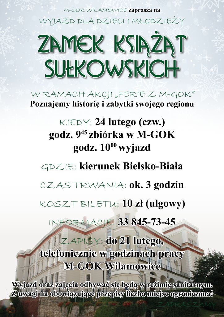 Zapisy na wyjazd do Zamku Książąt Sułkowskich w ramach akcji "Ferie z M-GOK"