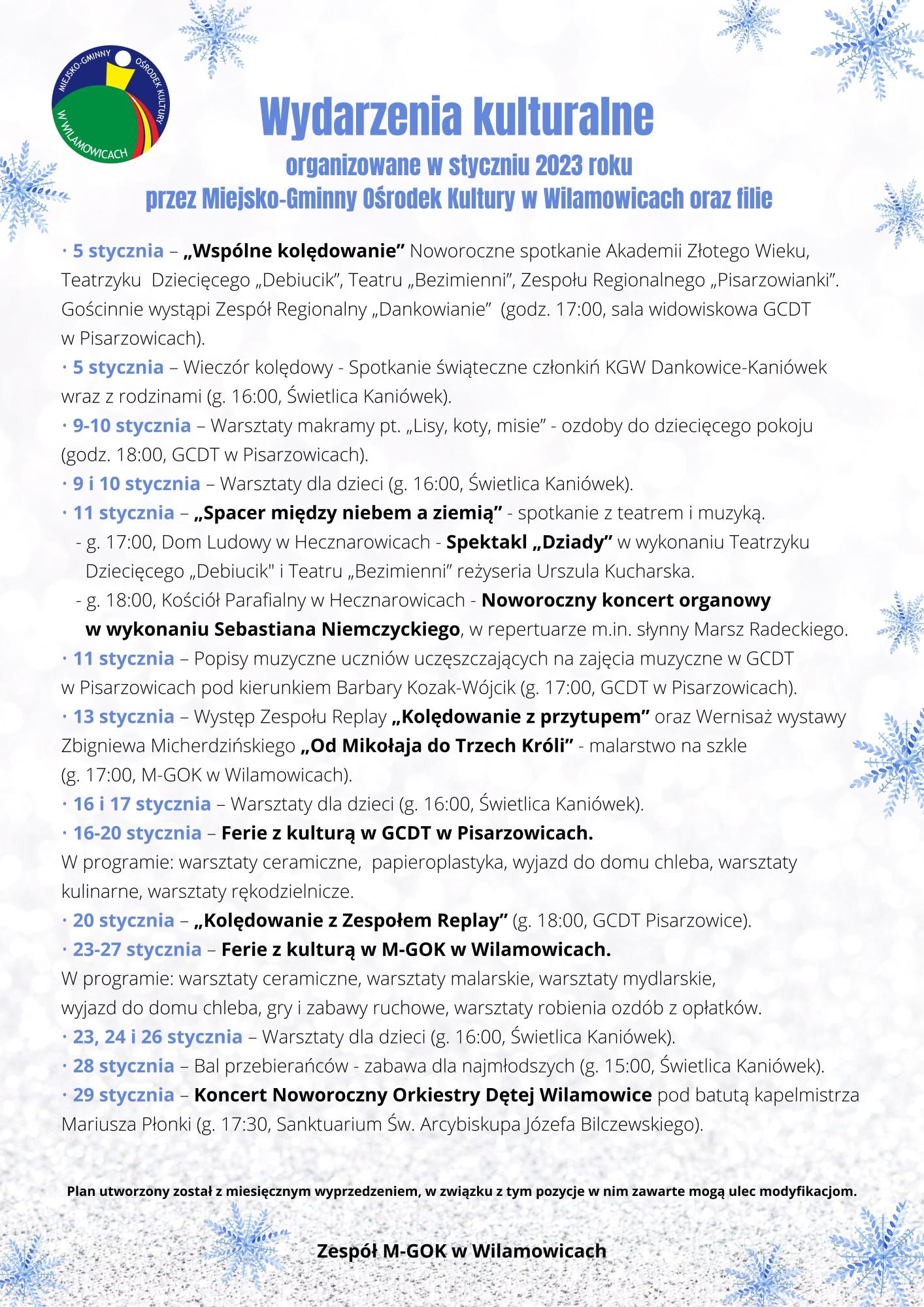 Zapraszamy do spędzenia styczniowych dni z M-GOK i naszymi filiami