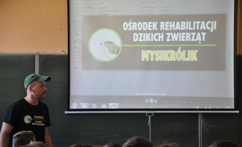 "Mysikrólik" Ośrodek Rehabilitacji Dzikich Zwierząt - prezes fundacji z wizytą w Zespole Szkół w Dankowicach