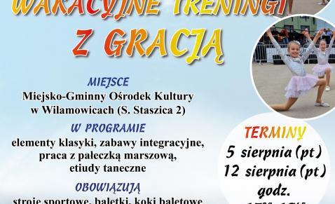 Akademia Mażoretek Gracja i M-GOK Wilamowice serdecznie zapraszają na OTWARTE WAKACYJNE TRENINGI Z GRACJĄ!