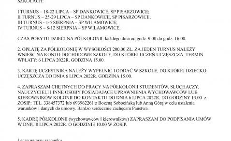 PÓŁKOLONIE LETNIE GMINY WILAMOWICE